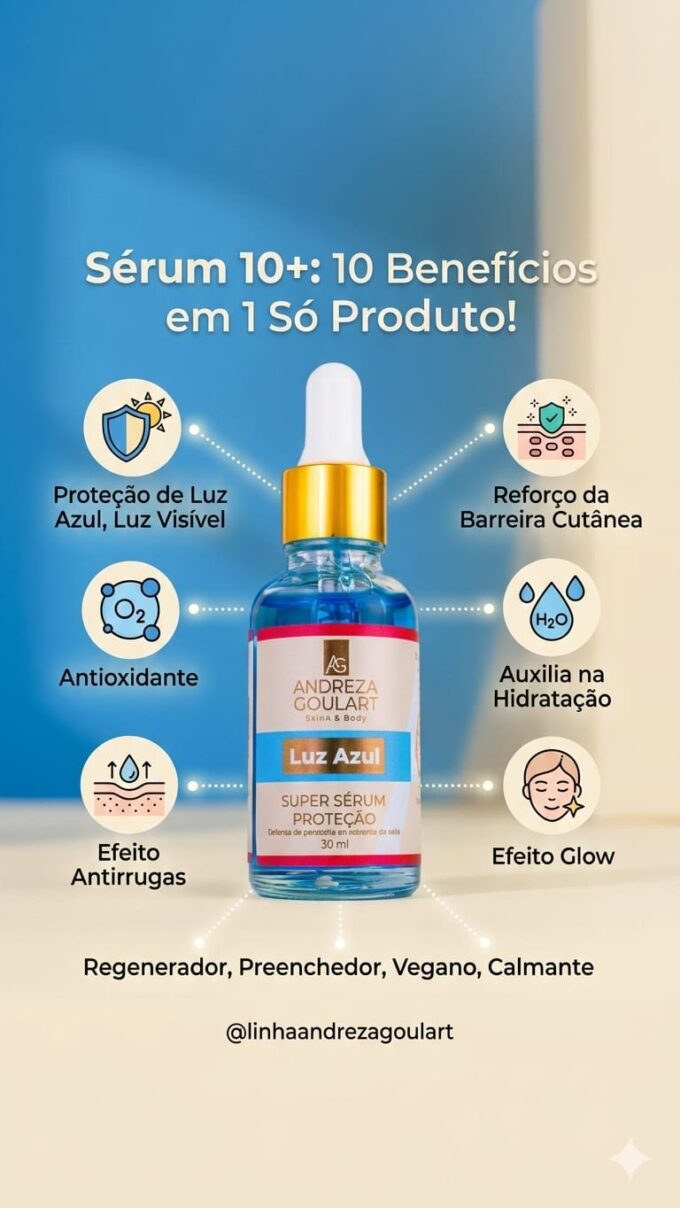 Diferente de um hidratante comum, ele atua como um escudo biológico. Sua composição é rica em ativos que combatem o estresse oxidativo causado pelas luzes artificiais. Ao aplicar o sérum, você garante: