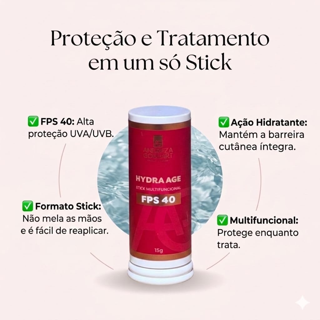 O Hydra Age FPS 40 da Linha Andreza Goulart surge como um aliado prático e eficiente, combinando proteção solar, hidratação e cuidado dermatológico em um único produto.